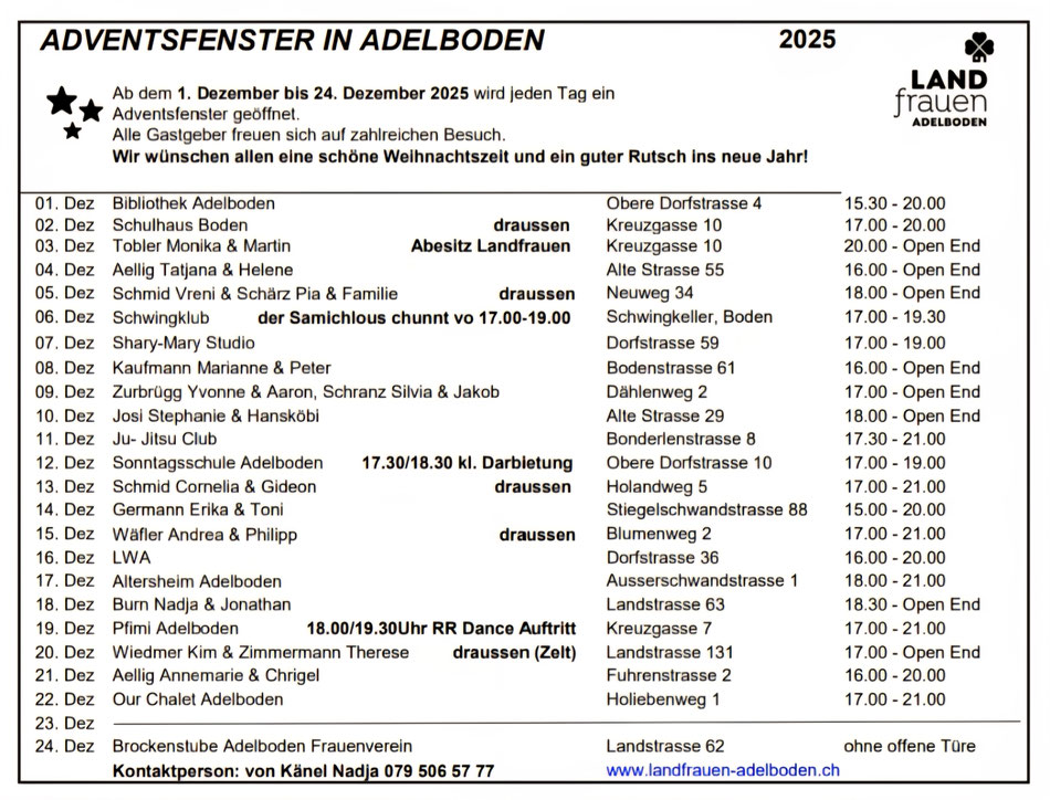 Es ist immer schön etwas Licht in die besondere Vorweihnachtszeit zu bringen. Und darum werden von den Landfrauen die Adventsfenster organisiert.